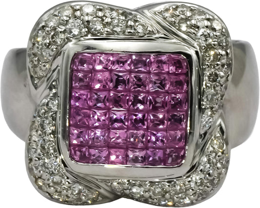 14k White Gold Diamond and Pink Sapphire Cluster Cocktail Ring 1.50CT Size 7.75