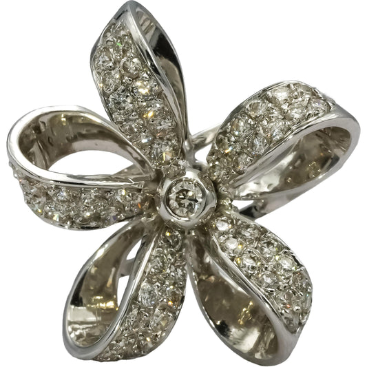 18k White Gold Round Diamond Ribbon Flower Ring 0.65CT Size 7.5