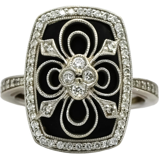 14k White Gold VS Diamond and Onyx Cocktail Ring 0.35CT Size 6.5