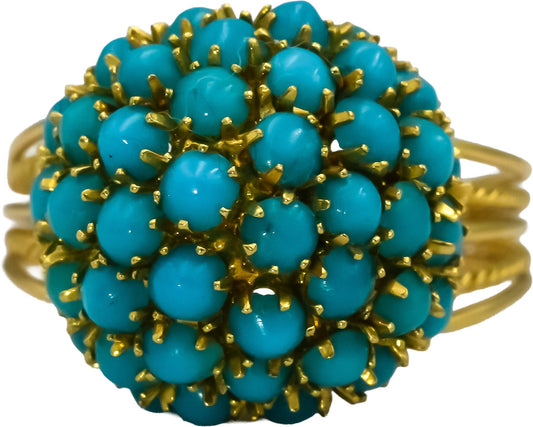 18k Yellow Gold Cabochon Turquoise Cluster Dome Ring Size 8.25