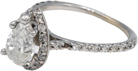 14k White Gold Pear & Round Diamond Engagement Ring 1.17CT w/ 1.02CT Center