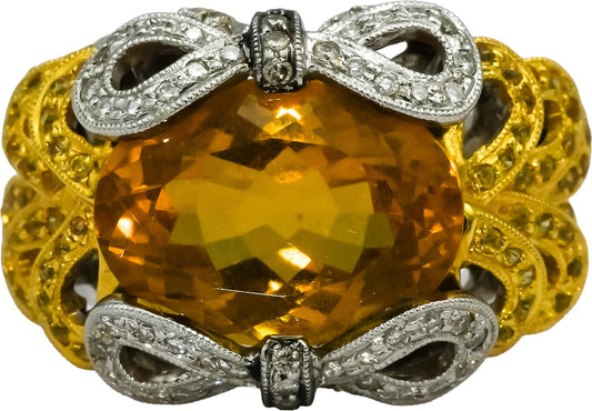 18k White Yellow Gold Citrine Yellow Sapphire Diamond Cocktail Ring 7.85CT Sz 7