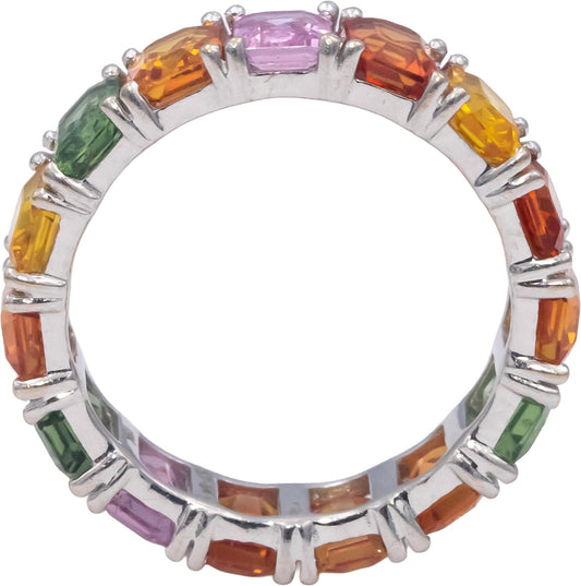 18k White Gold Emerald Cut Rainbow Sapphire Eternity Band Ring 7.50CTW Size 6.75