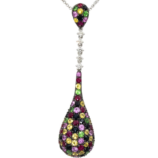 14k White Gold Round Diamond & Rainbow Gemstone Cluster Pendant Necklace 2.0CTW