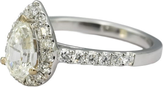 18k White Gold Pear Round Diamond Halo Engagement Ring 1.51CT / 1.01CT Center