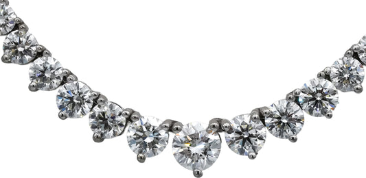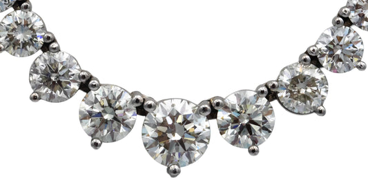 14k White Gold VS Round Diamond Graduated Width Riviera Necklace 14.21CT