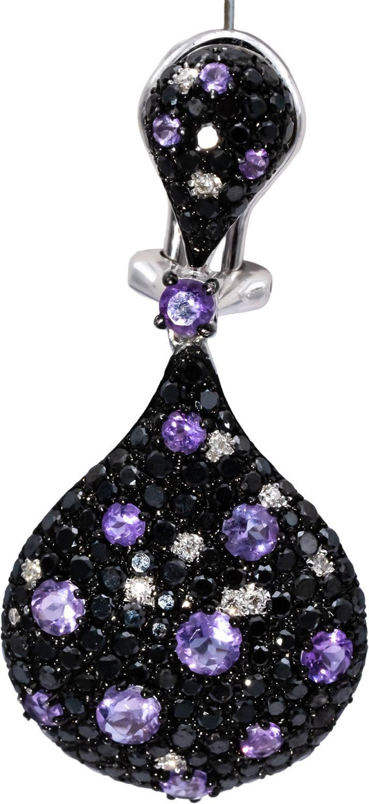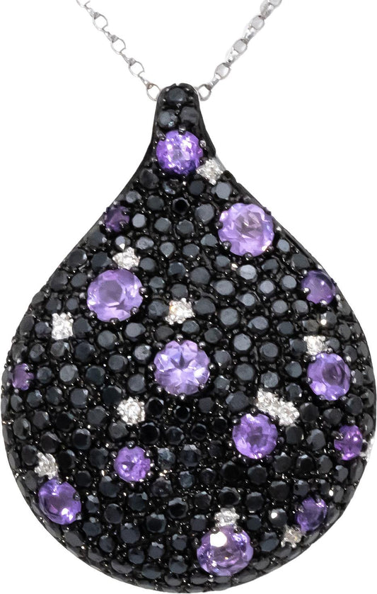 14k White Gold Round White Black Diamond & Amethyst Pendant Necklace 1.50CTW