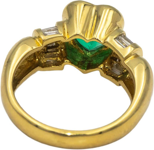 GIA Certified 18k Gold Heart Colombian Emerald & Diamond Ring 2.10CT Size 6