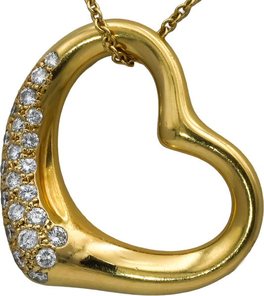 TIFFANY & CO 18k Yellow Gold Diamond Peretti Open Heart Pendant Necklace 0.50CT