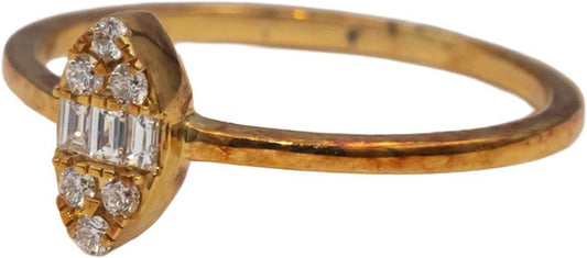 18k Yellow Gold VS Round & Baguette Cut Diamond Band Ring 0.10CT Size 7
