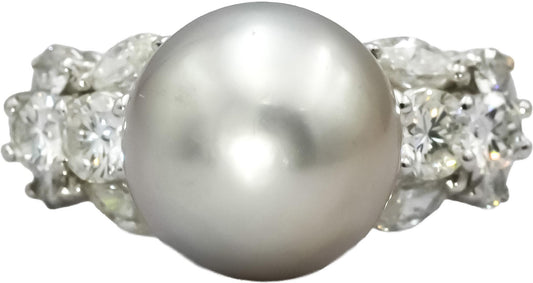 18k White Gold VS Diamond and 11.5mm Pearl Cocktail Ring 1.25CT Size 7.5