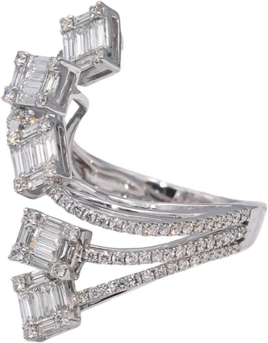 18k White Gold VS Baguette & Round Diamond Cocktail Ring 2.0CTW Size 7