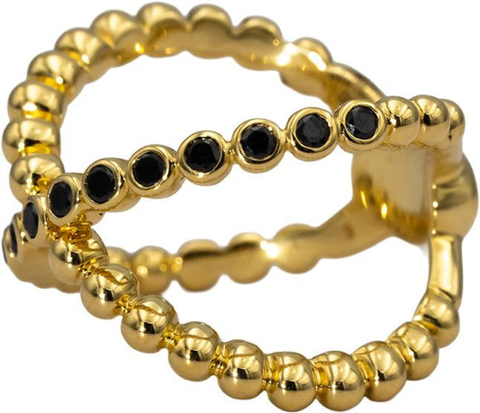 LAGOS 18k Yellow Gold Round Black Diamond Caviar Gold X Ring 0.30CT Size 6
