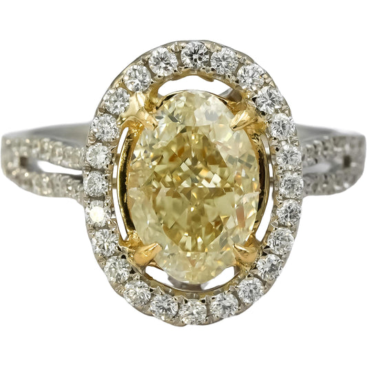 GIA Certified 18k Two Tone Gold Oval Round Diamond Ring 3.54CT w/ 3.01CT Center