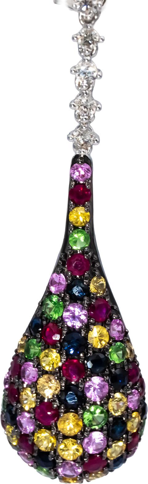 14k White Gold Round Diamond Rainbow Gemstone Cluster Dangle Earrings 4.0CT