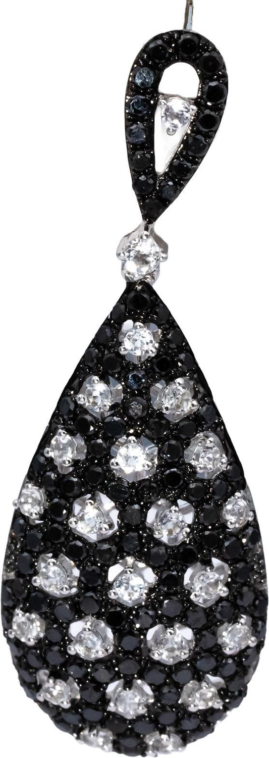 14k White Gold White Topaz and Black Diamond Cluster Dangle Earrings 2.50CTW