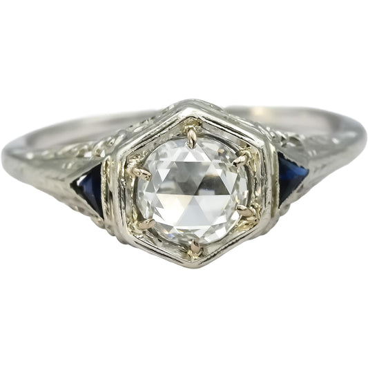 GIA Vintage Antique 18k White Gold VS1/G Diamond & Sapphire Filigree Ring .78CT