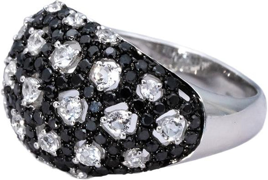 14k White Gold White Topaz and Black Diamond Cluster Dome Ring 1.0CTW Size 6.75