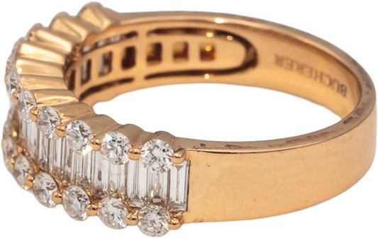 BUCHERER 18k Rose Gold VS Round & Emerald Cut Diamond Band Ring 1.50CT Size 6.5
