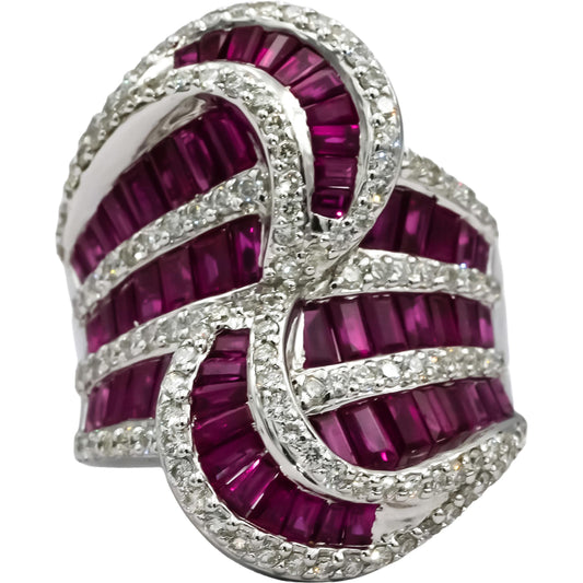18k White Gold Ruby and Diamond Cocktail Statement Ring 5.0CT Size 7.5
