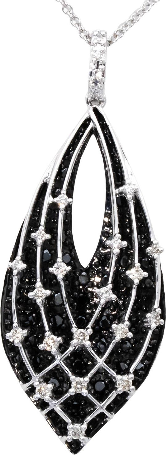 14k White Gold Round White and Black Diamond Pendant Necklace 1.0CT