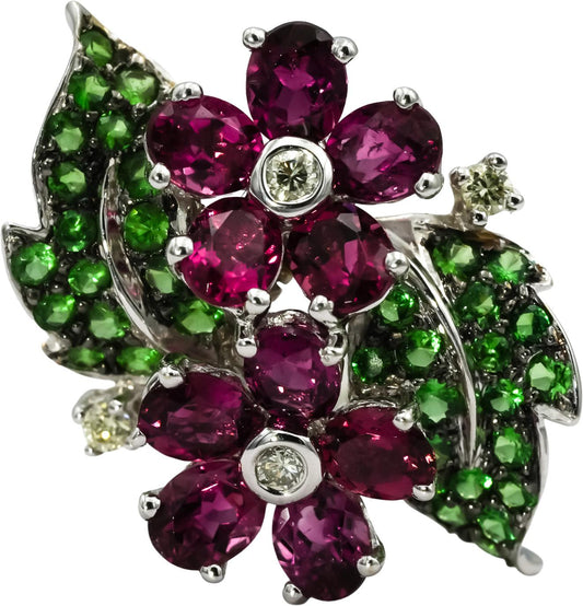 18k White Gold Diamond Pink and Green Tourmaline Flower Earrings 5.25CT