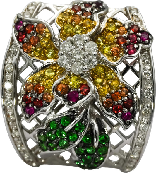 18k White Gold Diamond and Multi Color Assorted Gemstone Floral Earrings 2.40CT
