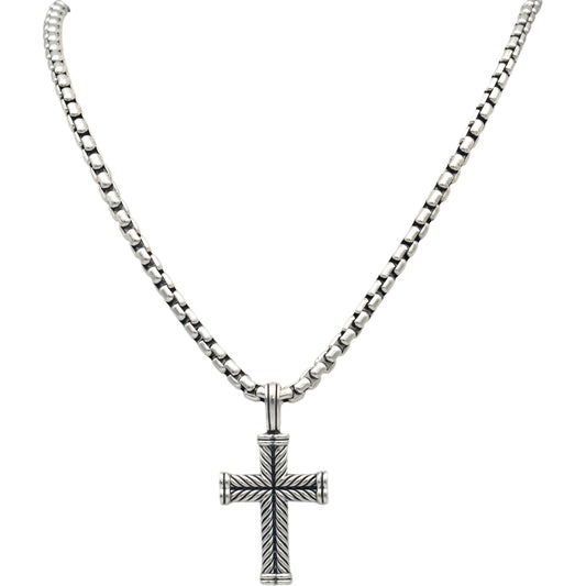 DAVID YURMAN Sterling Silver Chevron Cross Crucifix Pendant Necklace