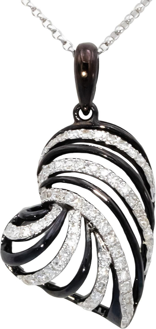 14k White Gold Black Rhodium Round Diamond Abstract Heart Pendant Necklace .35CT