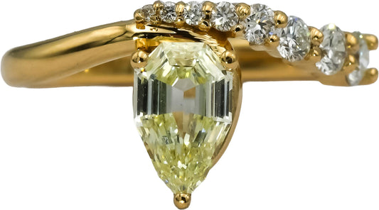18k Yellow Gold Pear and Round Diamond Engagement Ring 1.42CT w/ 1.04CT Center