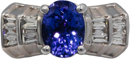 Designer 18K White Gold 1.50CT Diamond & Tanzanite Ring Size 7.75