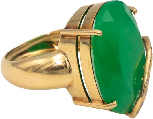 Diamond & Emerald 18k Yellow Gold Jewelry Jumbo Cocktail Ring 16.55CT Size 5.5