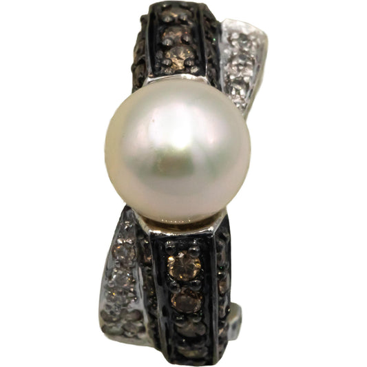 14k White Gold Round Diamond and 7.7mm Pearl Curved Earrings 0.33CT