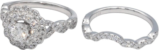 14k White Gold Diamond Double Halo Bridal Engagement Ring Set 1.50CT Size 6.75