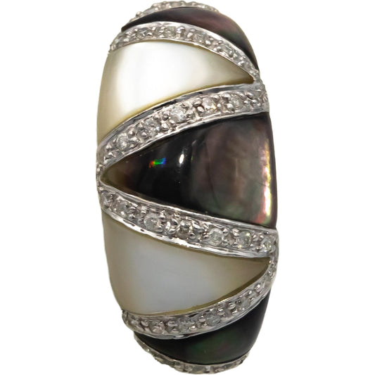 14k White Gold Diamond and Mother of Pearl Curved Earrings 0.40CT