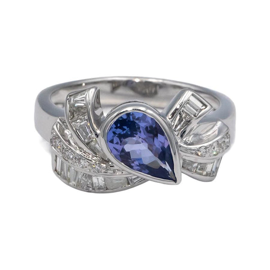 18k White Gold 1.40CT Diamond and Tanzanite Ribbon Ring Size 7