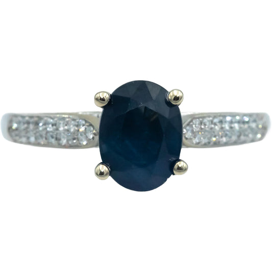 14k White Gold 2.07CT Round Diamond and Oval Sapphire Ring Size 6.5