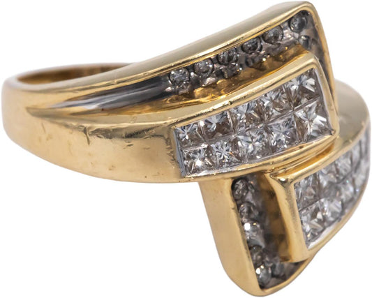 14k Yellow Gold VS Princess and Round Diamond Bypass Ring 1.0CT Size 8