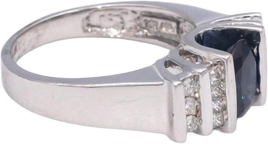 14k White Gold Round Diamond and Oval Sapphire Cocktail Ring 1.50CT Size 7.25