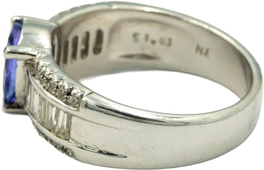 Designer 18K White Gold Diamond & Tanzanite Cocktail Ring 1.50CT Size 7.75