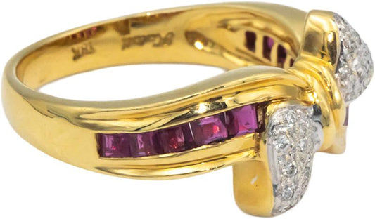 Designer 18k Yellow Gold Diamond and Ruby Knot Bowtie Ring 0.71CT Size 8