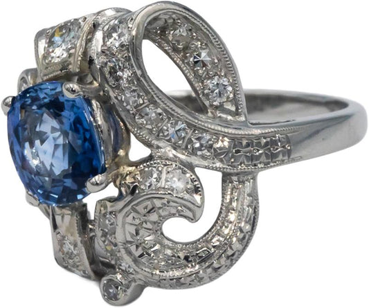 Vintage Antique Platinum Diamond and Sapphire Cocktail Ring 2.35CT Size 9