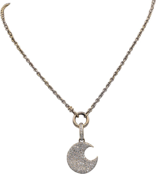 18k White Gold VS Diamond Cluster Crescent Moon Pendant Necklace 1.50CT