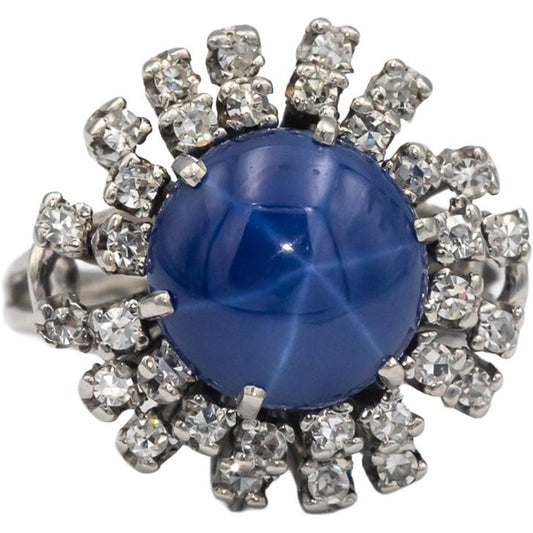 CGL Certified 14k White Gold Diamond & Star Sapphire Cocktail Ring 7.05CT Size 6