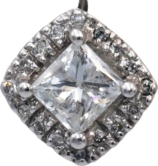 14k White Gold Princess & Round Diamond Stud Earrings 1.74CT w/ 1.54CT Centers