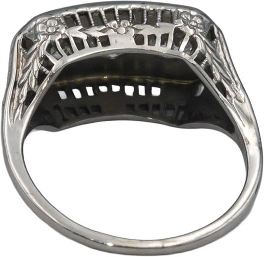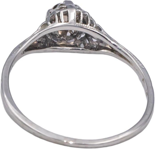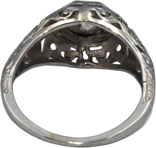 Vintage Antique 18k White Gold Round Diamond Filigree Ring 0.25CT Size 7.75