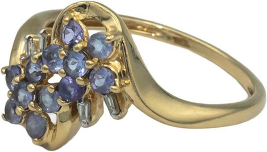 14k Yellow Gold Baguette Diamond and Round Tanzanite Cluster Ring 0.54CT Size 10