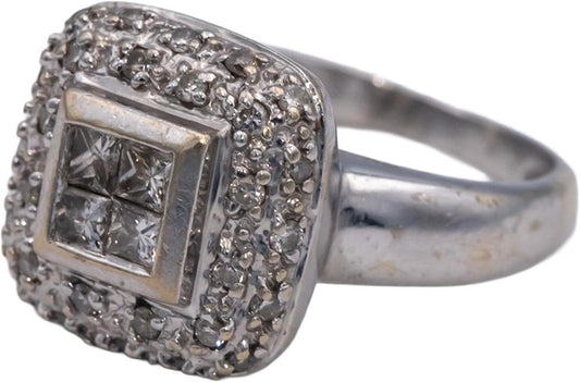 14k White Gold Round & Princess Cut Diamond Cluster Ring 0.40CT Size 4.75