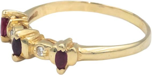 14k Yellow Gold Round Diamond & Marquise Cut Ruby Band Ring 0.29CT Size 10