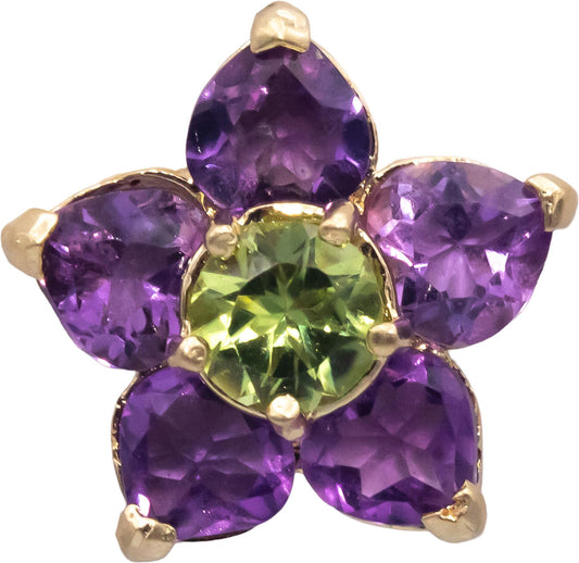 14k Yellow Gold Amethyst and Peridot Flower Stud Earrings 3.50CT